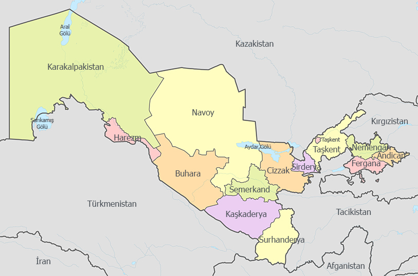 Özbekistan 12 il ve bir Özerk bölgeden (Karakalpakistan) oluşur.